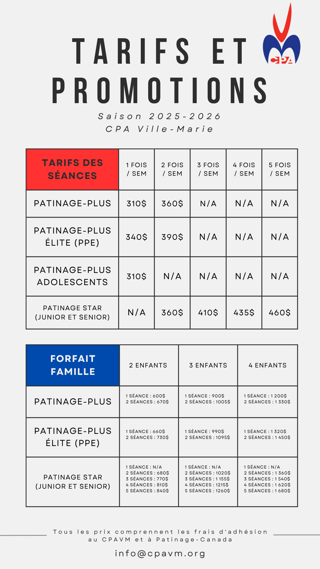 Inscrivez-vous au Club de Patinage Artistique Ville-Marie et économisez 25 $ sur votre inscription 🤩