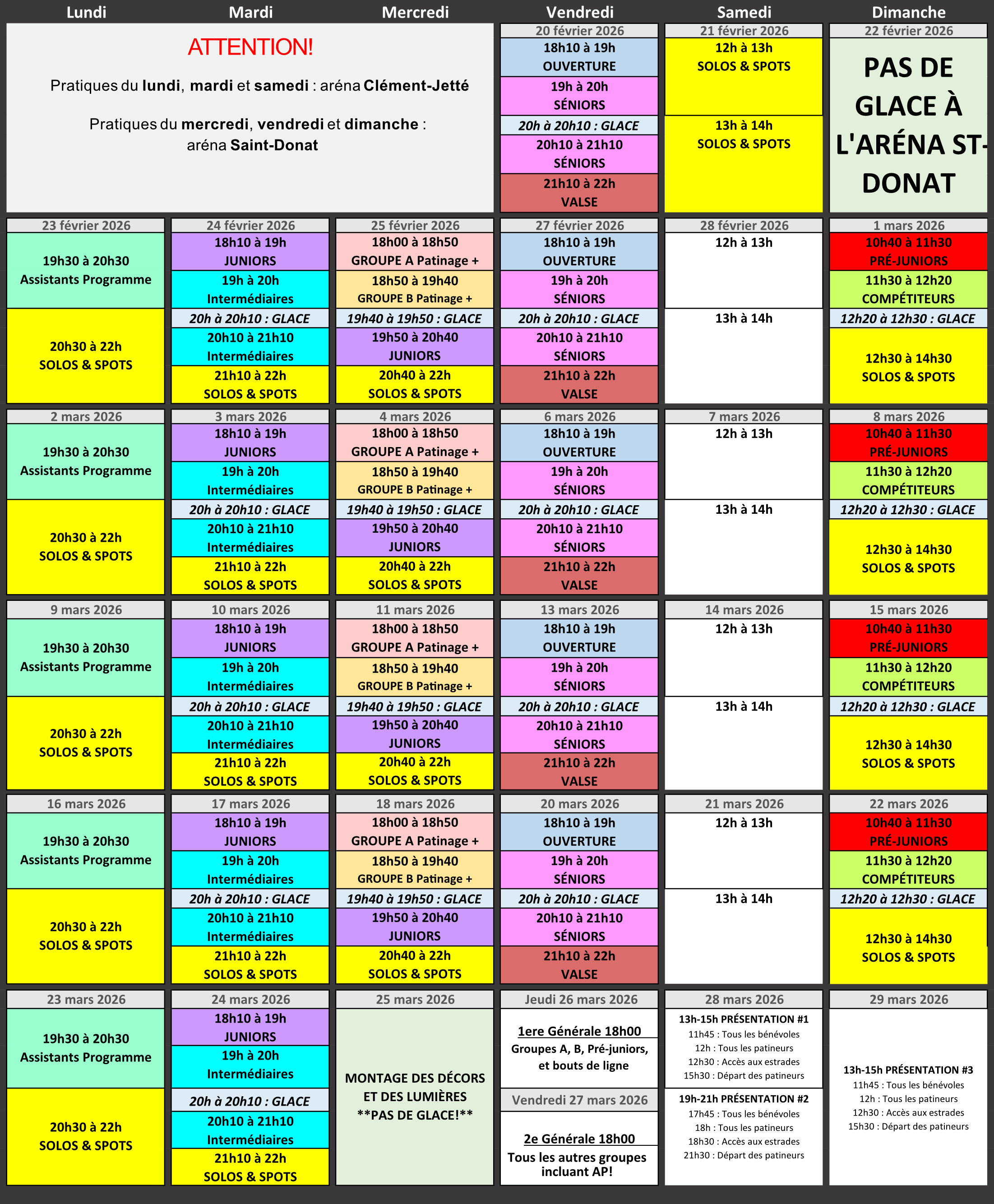 HORAIRE PRATIQUE REVUE SUR GLACE 2026